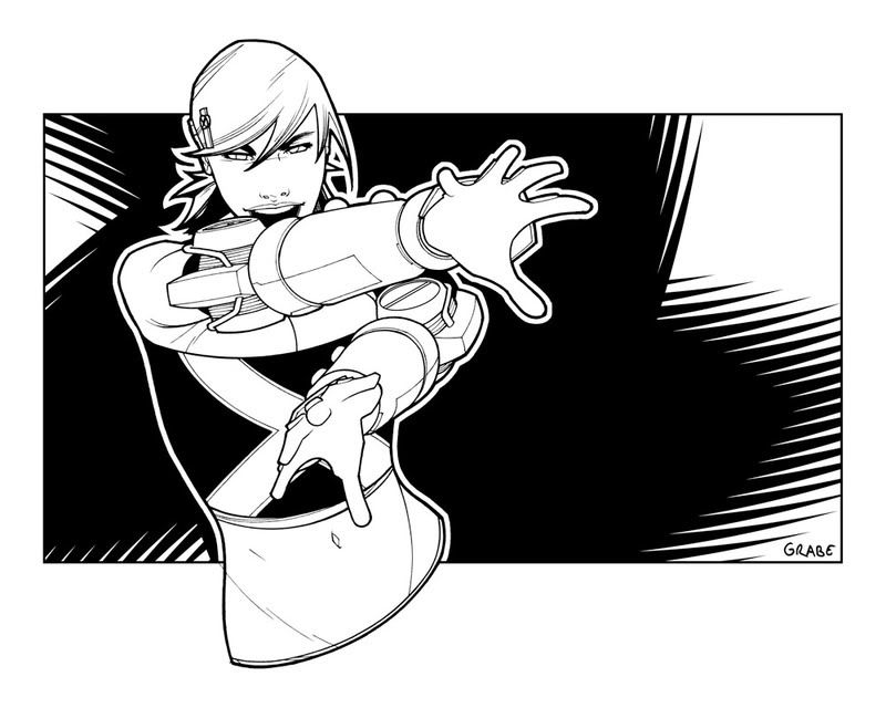 I drew this this afternoon and originally inked it with brush but it didn't look very good when I scanned it in so I ended up re-inking it completely in Illustrator. Right now I like it, but maybe I won't tomorrow when I look at it again. I really like how smooth and clean it is, which is a style that I think well on the Flash. I'm getting a lot faster inking on the computer, almost to the point where it would be a feasible way to ink a book. The coloring is flatter than I'd like, but it's been years since I took my computer coloring course so it's about all I can do anymore.